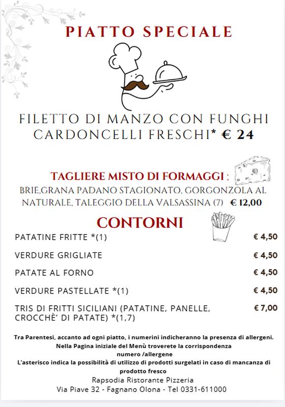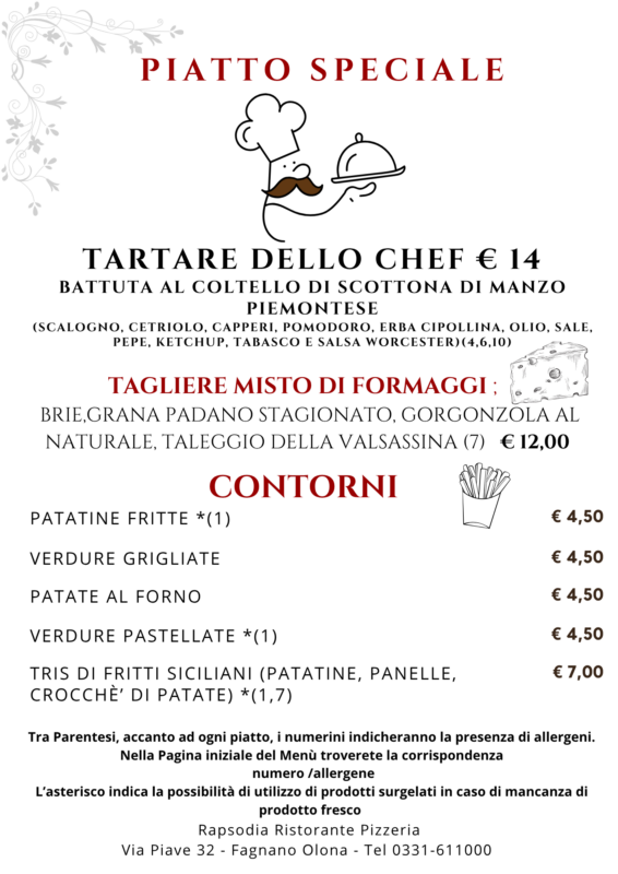 menù alla carta
