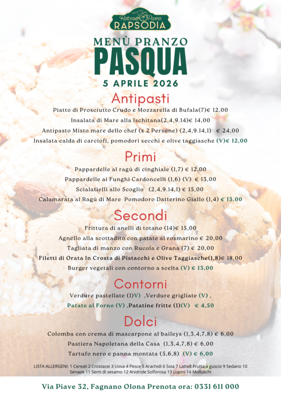 I posti sono limitati e Pasqua arriva in fretta. Una chiamata e il tuo tavolo è assicurato.