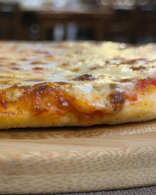 La pizza in teglia del Rapsodia è la versione più piaciona e irresistibile della nostra classica pizza: alta, soffice dentro, croccante fuori e carica di gusto.